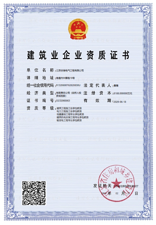 在創(chuàng)業(yè)之初,公司就堅(jiān)持高起點(diǎn)的戰(zhàn)略思路,廣納賢才,集聚行業(yè)精英,創(chuàng)新發(fā)展,做優(yōu)企業(yè)品牌?,F(xiàn)已取得:承裝二級(jí)、承修二級(jí)、承試二級(jí),電力工程施工總承包二級(jí),輸變電工程專業(yè)承包二級(jí),建筑工程施工總承包二級(jí),建筑機(jī)電安裝專業(yè)承包二級(jí),地基基礎(chǔ)專業(yè)承包二級(jí)資質(zhì)證書,并通過了質(zhì)量、環(huán)境、職業(yè)健康和安全管理體系認(rèn)證,確保各項(xiàng)工作有序管控。